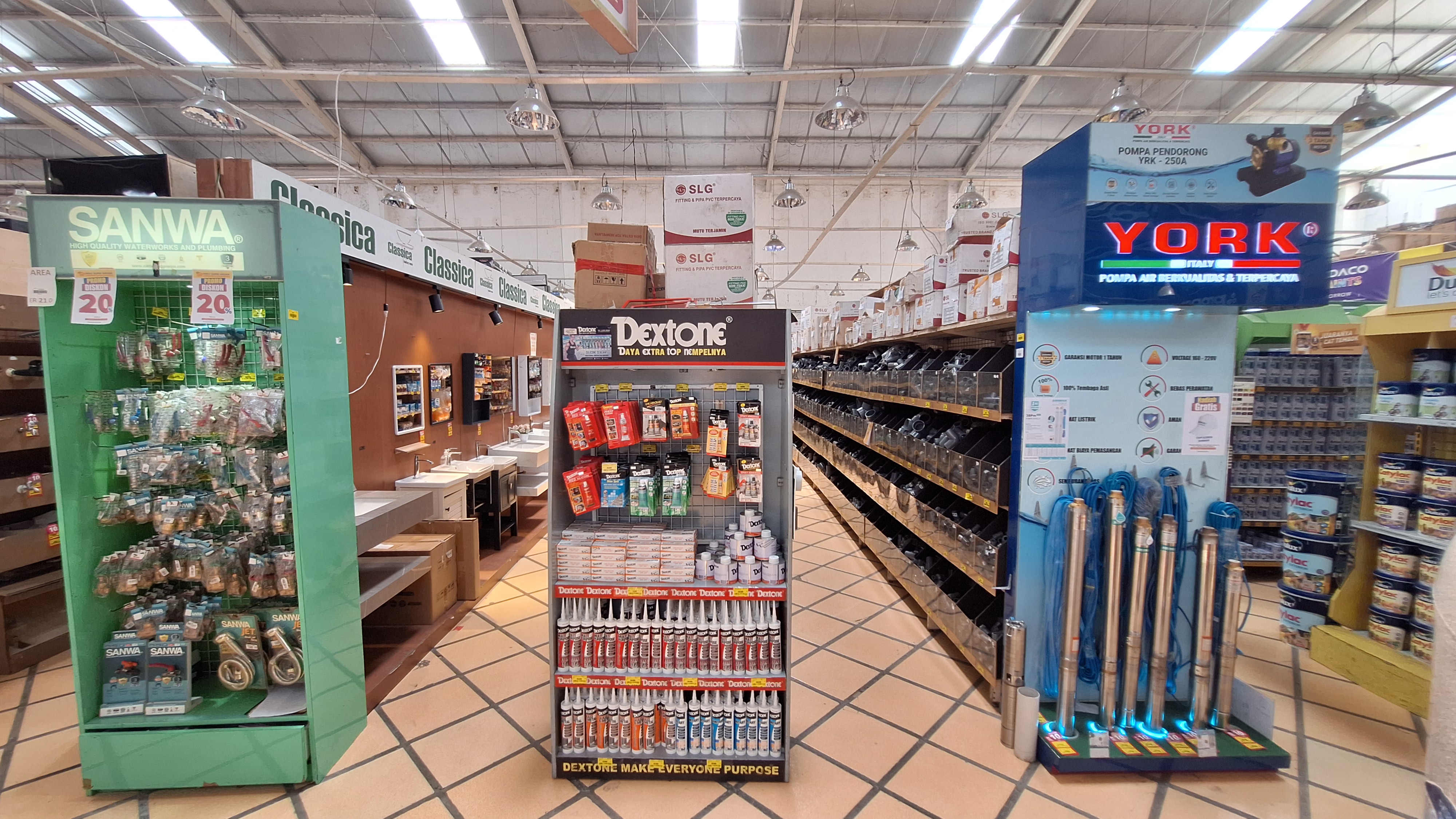 Indo Super Grosir sebagai supermarket bahan bangunan menyediakan beragam kerpeluan bangunan mulai dari atap hingga lantai beserta isinya dibagi ke dalam divisi; Bath and Kitchen, Bolt & Screw, Building Material, Flooring & Wall, Furniture, Home Appliances, Houseware, Keylock & Hardware, Paint & Sundrise, Plumbing and Tool & Hobbies.