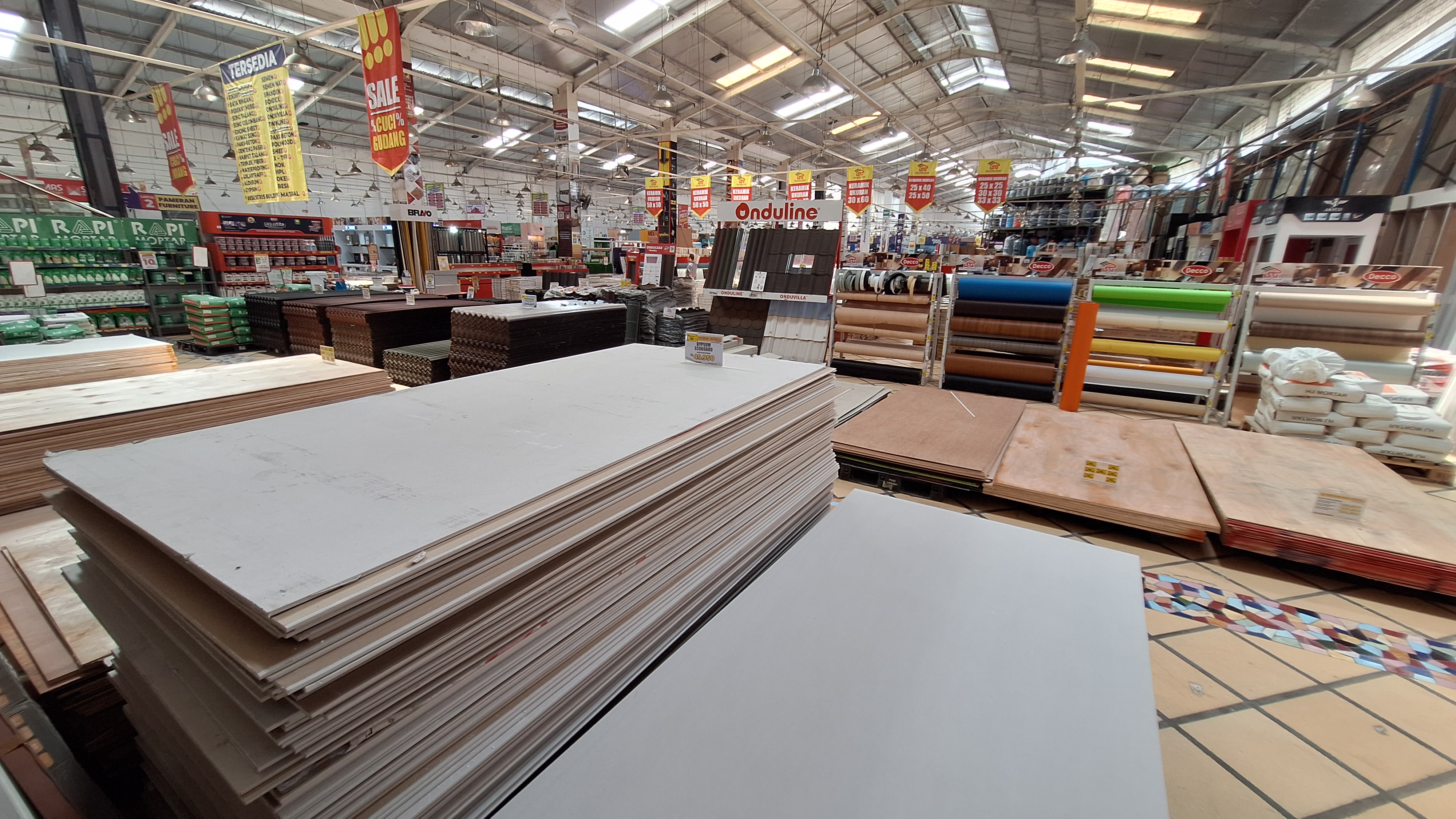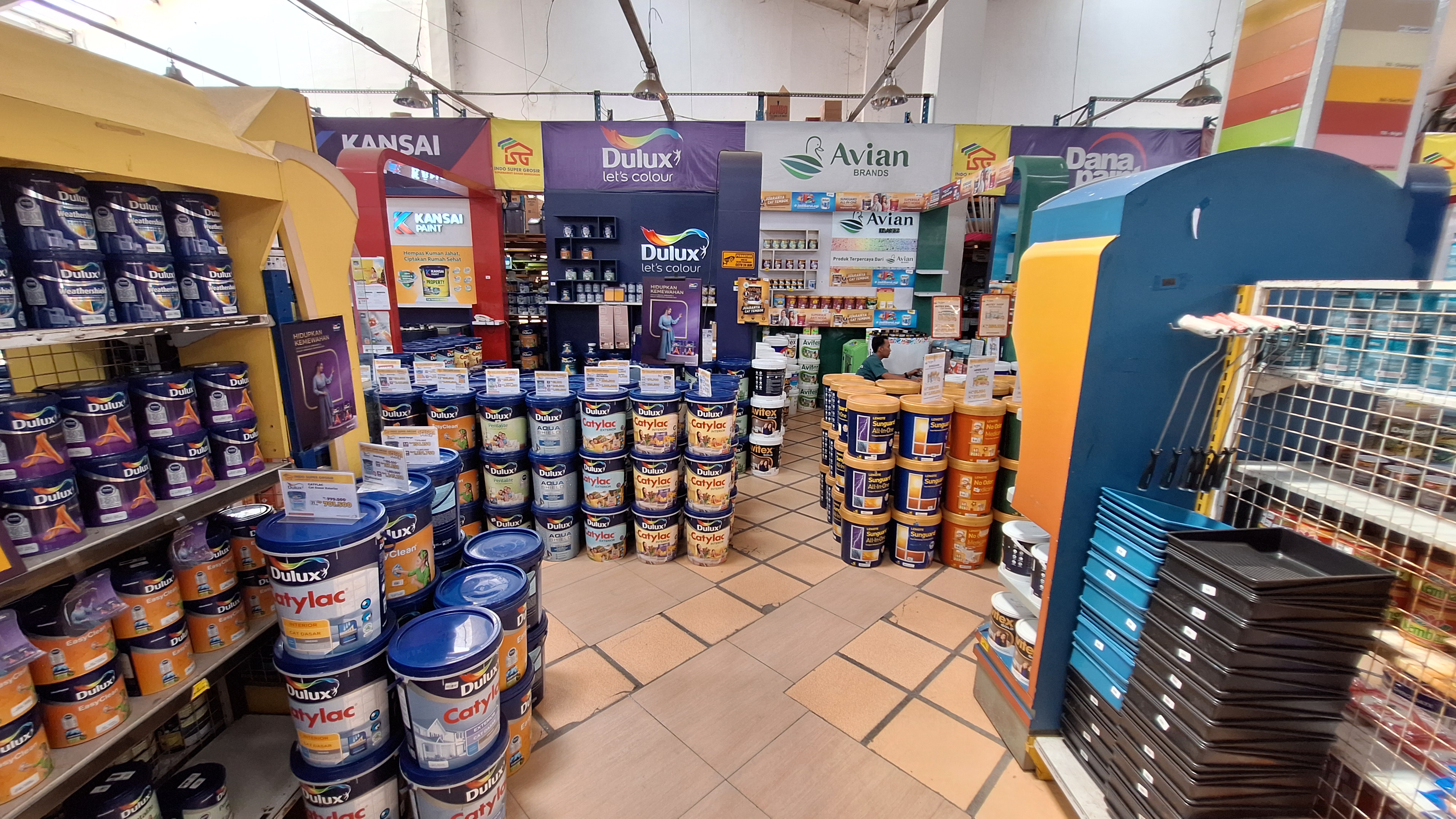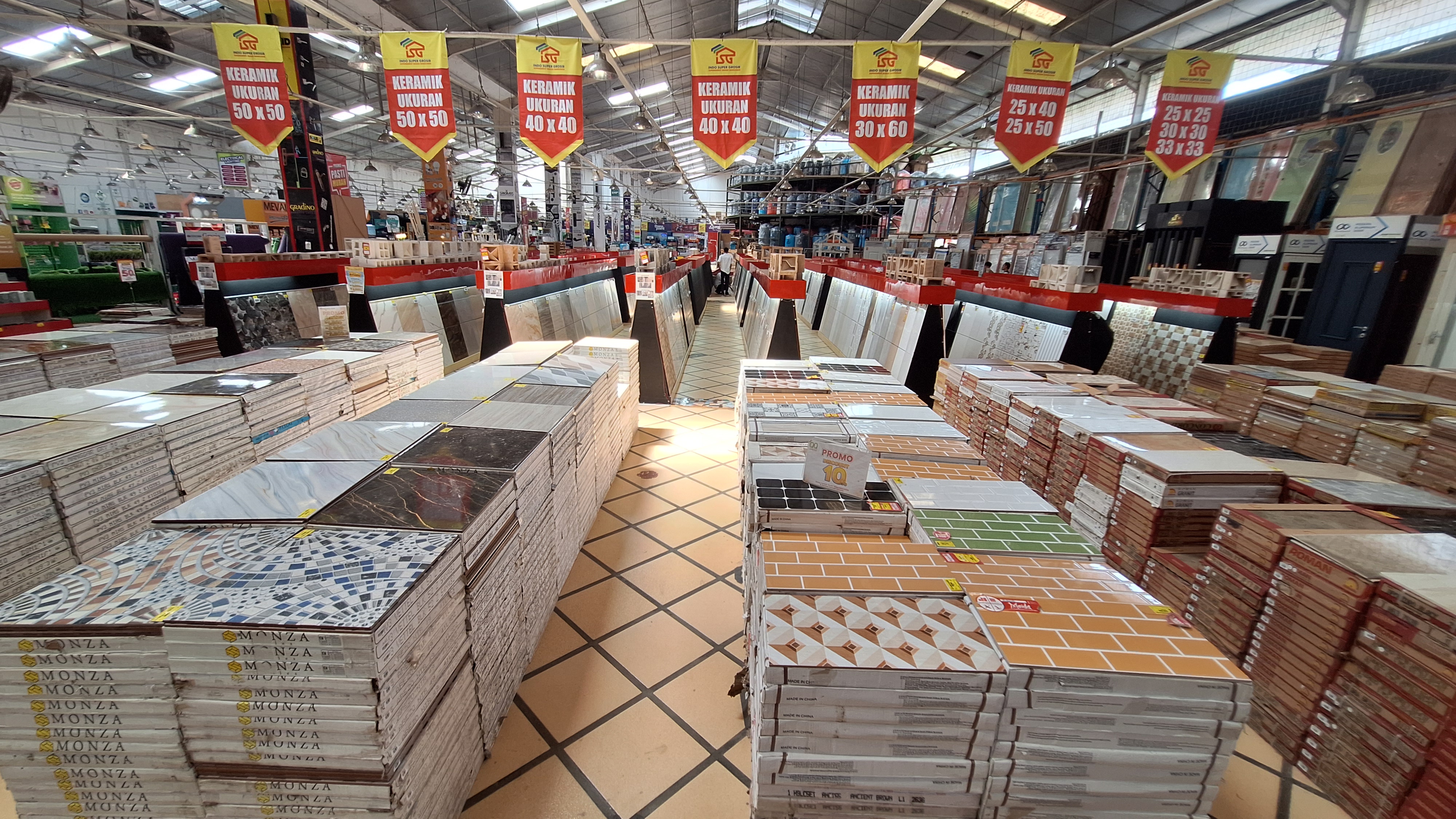 Indo Super Grosir sebagai supermarket bahan bangunan menyediakan beragam kerpeluan bangunan mulai dari atap hingga lantai beserta isinya dibagi ke dalam divisi; Bath and Kitchen, Bolt & Screw, Building Material, Flooring & Wall, Furniture, Home Appliances, Houseware, Keylock & Hardware, Paint & Sundrise, Plumbing and Tool & Hobbies.